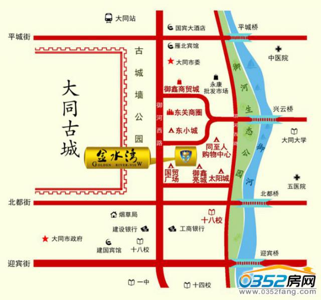 金水灣項目位于大同市御河西路上,北鄰東關商圈,東跨御東生活區,南接迎泰商圈,西處古城旅游主干道,25萬常住人口,人群密集,交通便利。