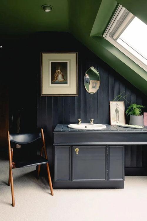 近年來懷舊風格相當受歡迎,復古的綠和清新自然的感覺相融合,絕對能為家居設計加分。比如這個家,就像是一顆翡翠寶石,能感受到英式的優雅、現代的摩登和濃濃的復古韻味。空間充斥的復古綠、藍調,讓家的美感角落都美的很高級。雖然現實中如此大膽的設計很少,但不妨礙我們欣賞別人的創意,將美好帶入現實的一流品味。
