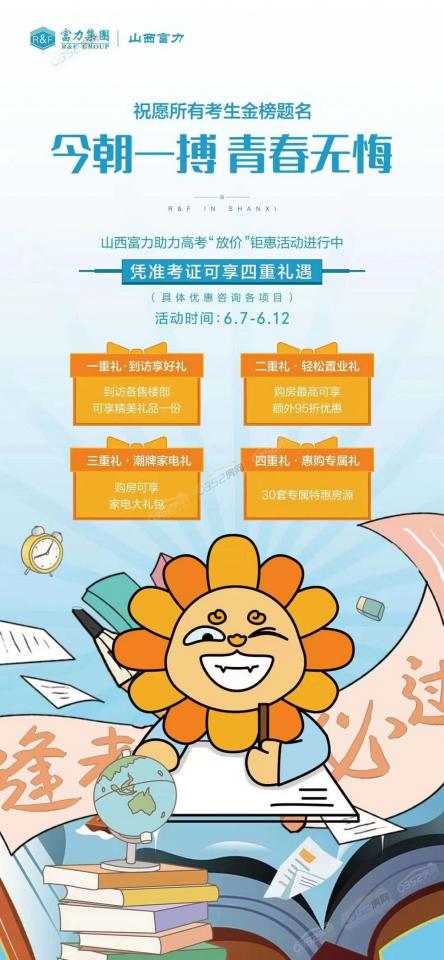 摘要:大同富力高考購房優惠活動來啦!憑準考證到訪及成交均有好禮相贈,一起來看看吧!