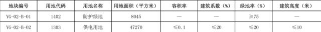 地塊控制性指標一覽表