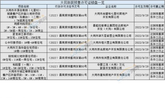 以下為截止至9月29日,大同新增五證齊全的樓盤項(xiàng)目名單: