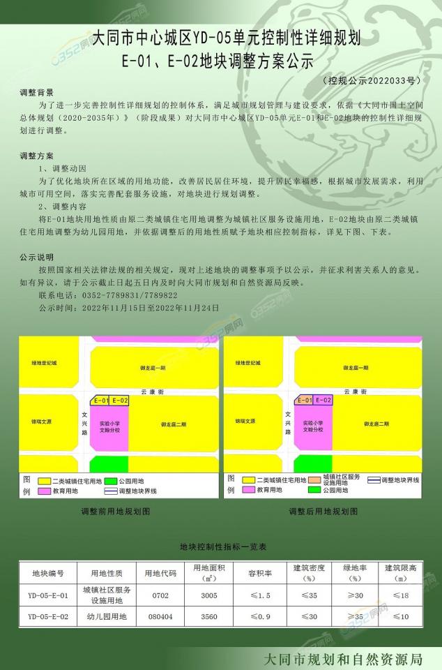 新增幼兒園用地!大同御東文興路地塊控規調整