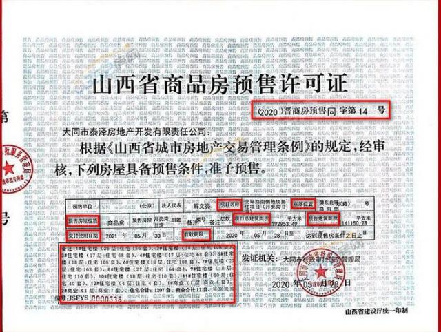 我們先來看看山西省商品房預(yù)售許可證上都有哪些內(nèi)容吧!