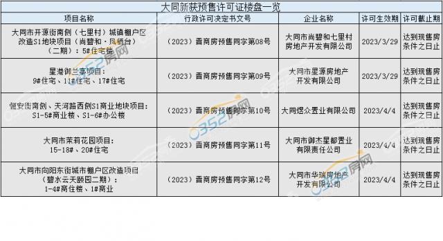 最新獲得預(yù)售許可證樓盤