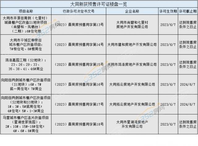 五證齊全!大同新一批樓盤預售許可證公示!