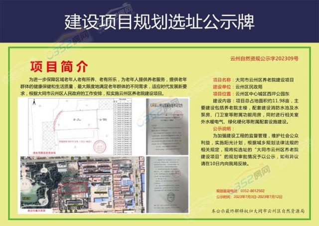 以上就是云州區養老院項目和大同三利農產品交易中心項目的建設規劃許可公示了!