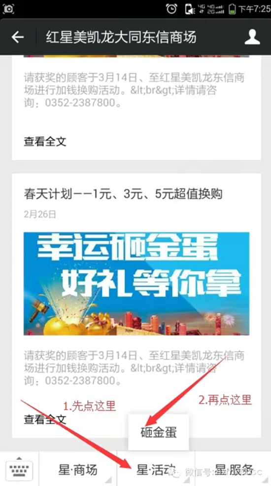 關(guān)注紅星美凱龍東信商場官方微信并進行砸金蛋活動即可