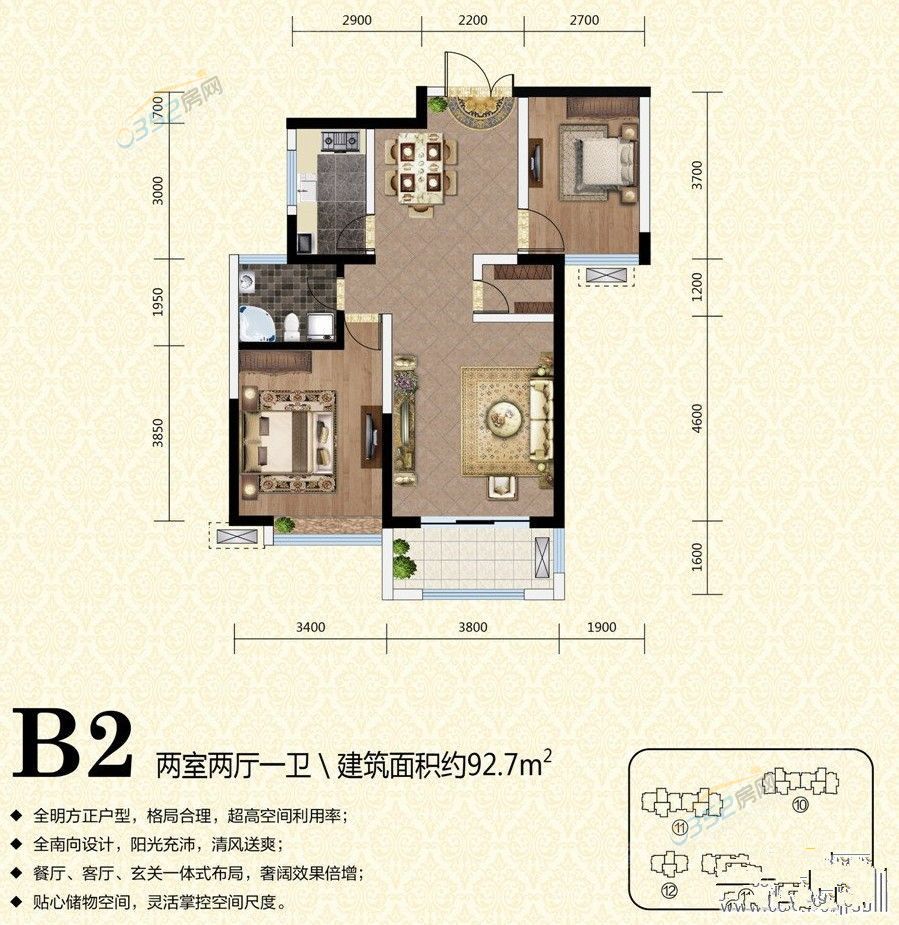 2、全明戶型,方型板正。