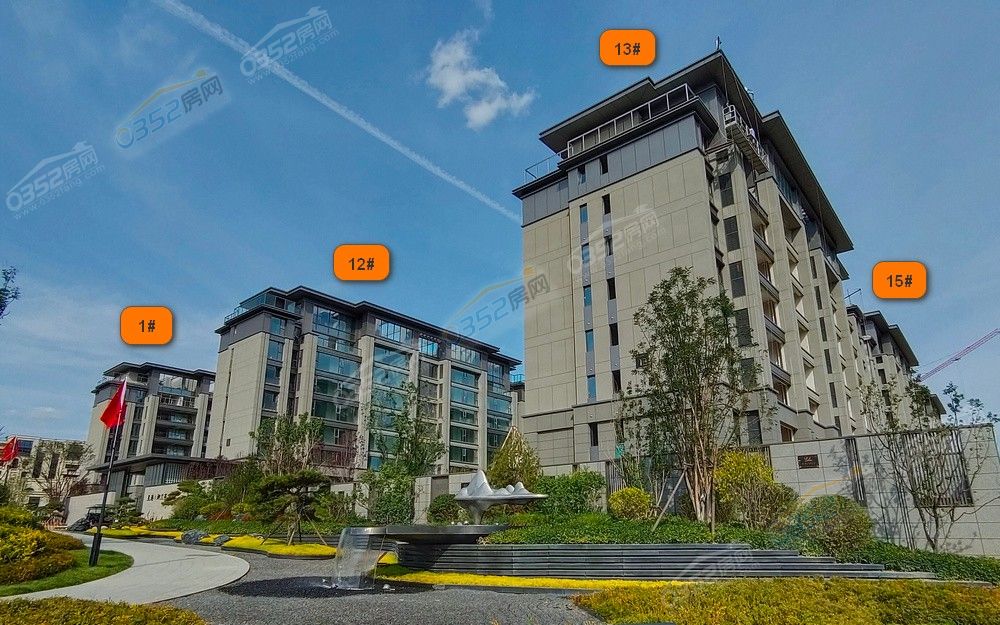 工程進度:各樓棟玻璃安裝完成,園林景觀建設。