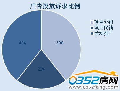 廣告中,訴求點是關鍵內容,在此次統計中,多數的樓盤投放信息是相關的項目介紹,其次是開發公司推廣活動,而其中項目銷售占少部分,包括促銷、優惠等,這也和不同項目具體銷售階段的銷售節點有關。
