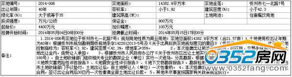 2014-006 號(hào)地塊:2014年05月04日08時(shí)00分 至 2014年05月15日17時(shí)00分 ;