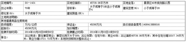 SG—1431 號(hào)地塊:2014年10月20日08時(shí)00分 至 2014年11月03日10時(shí)00分 ;