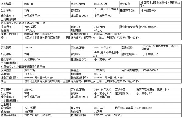 2014-01 號地塊:2015年01月21日08時00分 至 2015年01月30日16時00分 ;