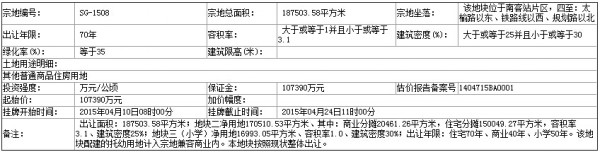 SG-1508號地塊:2015年04月10日08時00分至2015年04月24日11時00分 ;