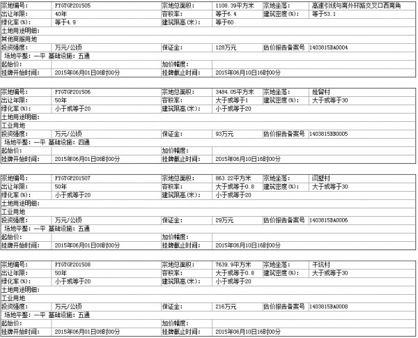 PYGTGP201506 號(hào)地塊:2015年06月01日08時(shí)00分 至 2015年06月10日16時(shí)00分 ;