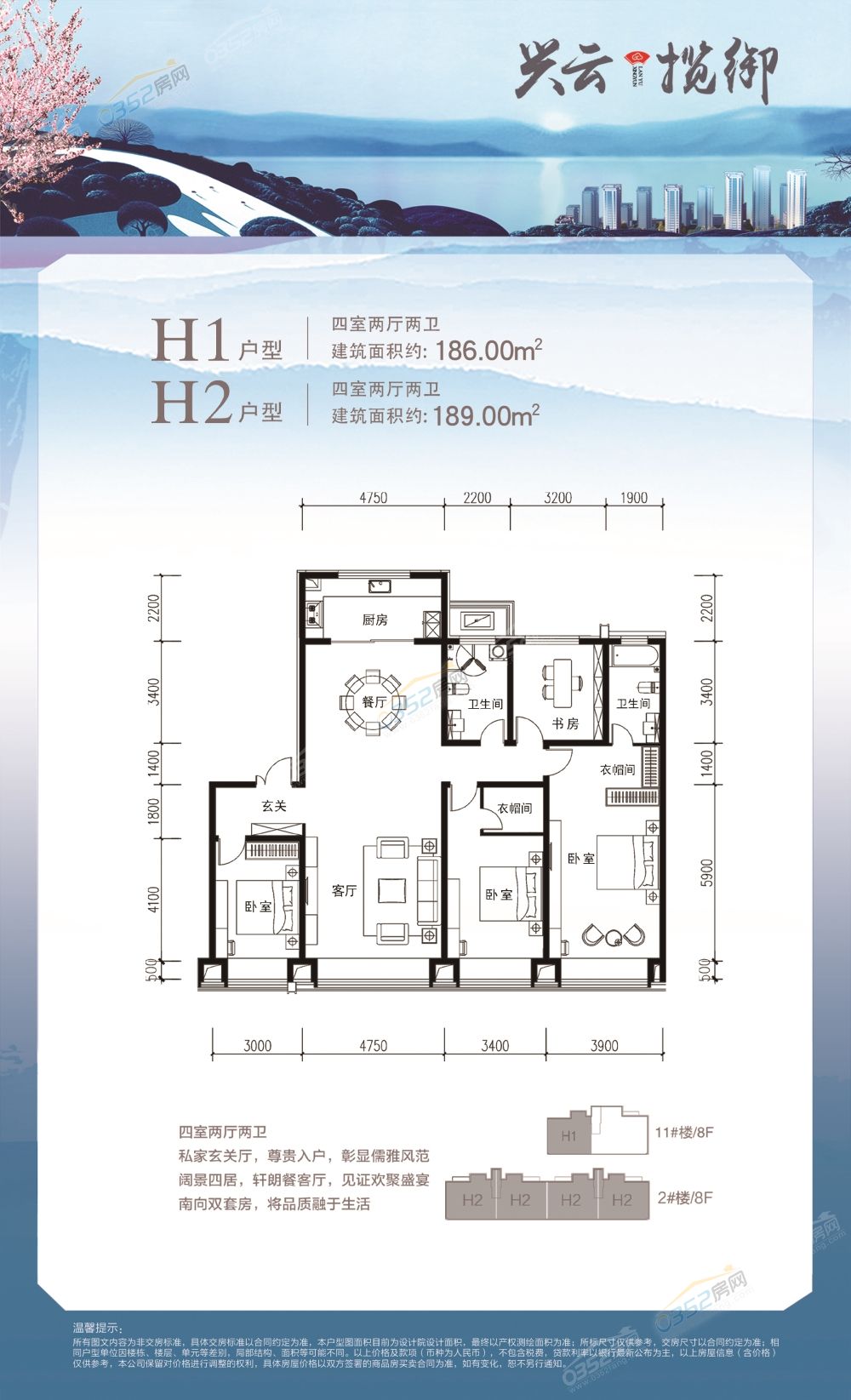 H1戶型(建面約186㎡)/H2戶型(建面約189㎡)