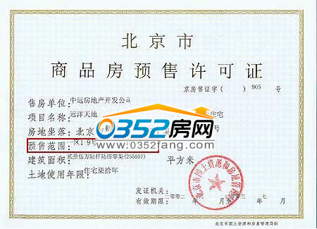 《商品房銷售(預(yù)售)許可證》正面(紅框中的預(yù)售范圍為本項(xiàng)目可銷售樓層,購房者務(wù)必看清購買樓層是否在預(yù)售范圍內(nèi))