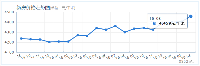 據大同0352房網網站有關大同在售新房均價走勢參考顯示,目前大同在售樓盤,2016年3月統計大同樓盤均價4459元/平米,2016年2月份統計大同樓盤均價同為4405元/平米。房價在2016年3月和2016年2月相比,3月份房價出現上漲,每平米上漲54元。