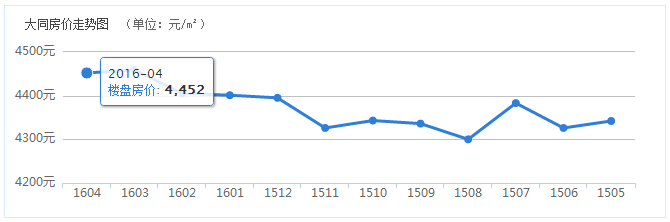 據(jù)大同0352房網(wǎng)網(wǎng)站有關(guān)大同在售新房均價走勢參考顯示,目前大同在售樓盤,2016年4月統(tǒng)計大同樓盤均價4452元/平米,2016年3月份統(tǒng)計大同樓盤均價同為4459元/平米。房價在2016年4月和2016年3月相比,房價基本持平,4月份房價每平米小幅下降7元。